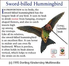381.The bird with the longest bill to body size: Sword-billed Hummingbird Ensiferaensifera/ Andes/ Venezuela/ Bolivia/ 10.2 cm long